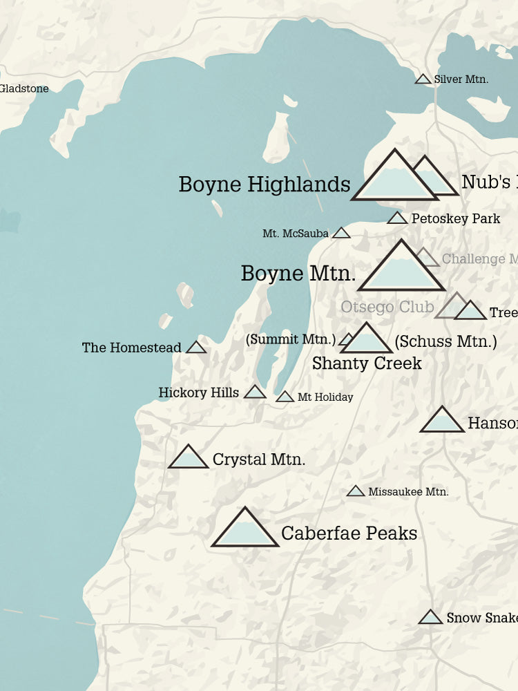 Michigan Ski Resorts Map Poster | Ski area, Ski resort, Skiing